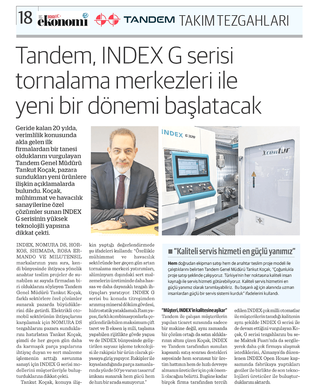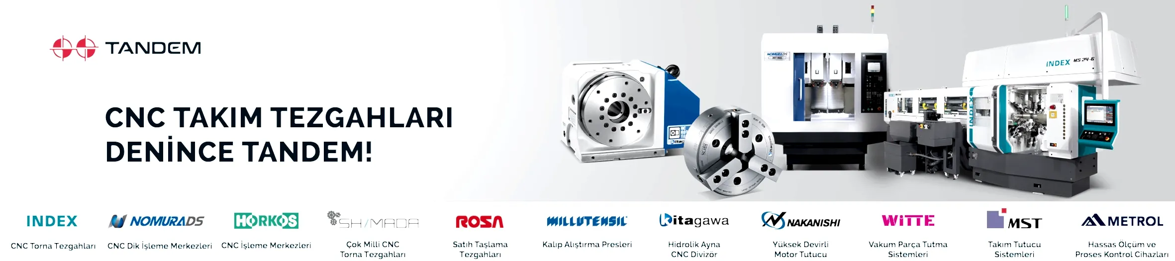 Tandem Takım Tezgahları, CNC sektöründe uzmanlaşmış bir firma. Kurucuları Tankut KOÇAK ve Ertan GÜNEY, geniş deneyime sahip. 2006'dan beri sektörde güçlü markaları bünyelerine katarak çeşitli çözümler sunuyorlar.